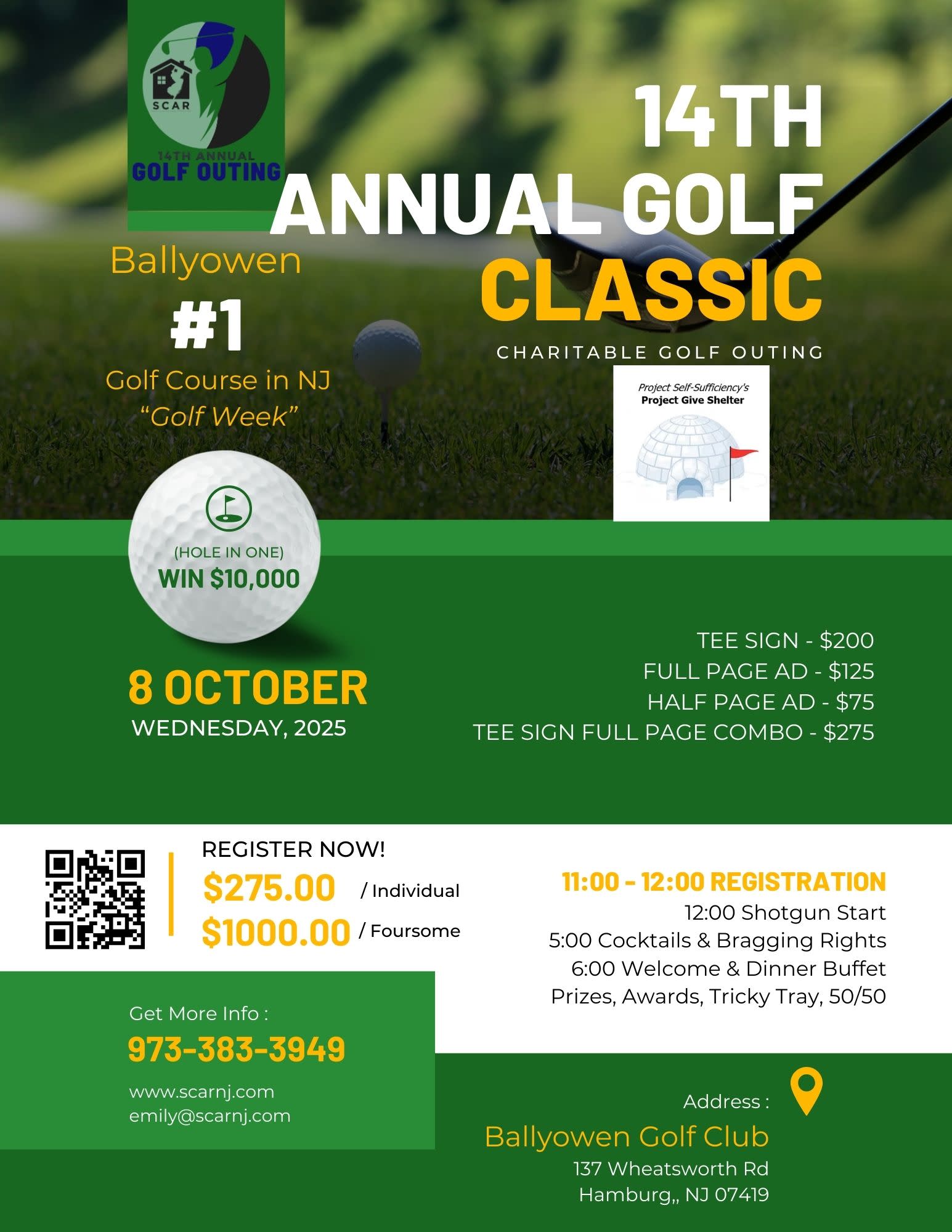 REGISTRATION NOW OPEN! 14th Annual Golf Classic with a portion of our proceeds benefiting Project Self-Sufficiency and Project Give Shelter, a program that provides emergency assistance to Sussex County families in housing crises. For more information on Project Self-Sufficiency and their Project Give Shelter mission, visit www.projectselfsufficiency.org Golf Classic - Individual Player and Dinner Registration - $275 per player Golf Classic - Foursome and Dinner Registrations - $250 per player Dinner & Tricky Tray ONLY $80.00