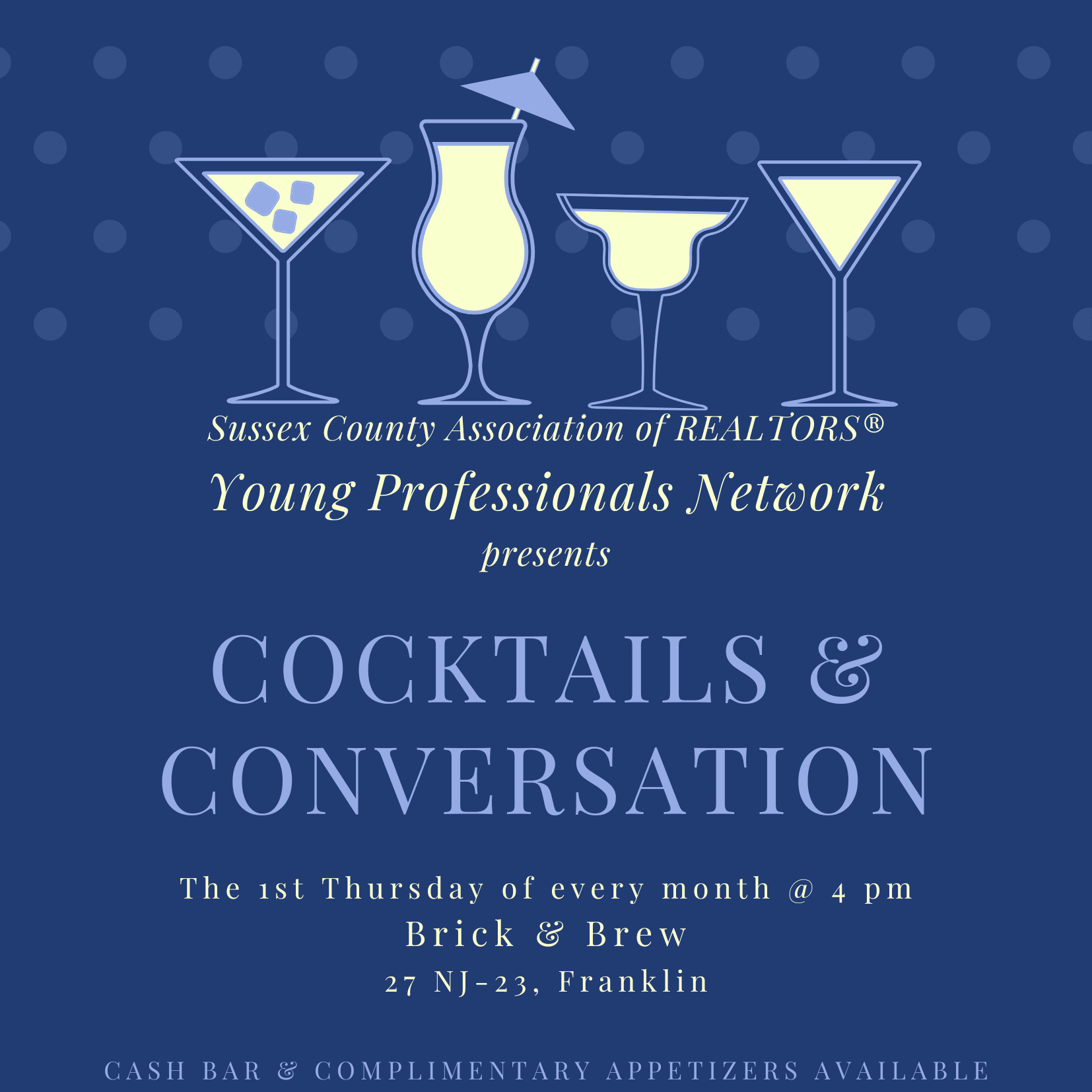 ** Canceled ** The YPN Present Cocktails and Conversations; a monthly networking event on the Third-Thirsty-Thursday of the month. This networking event is for YPN members to get together and network. Cash bar and complimentary appetizers available.** Canceled ** YPN Cocktails & Conversations Networking