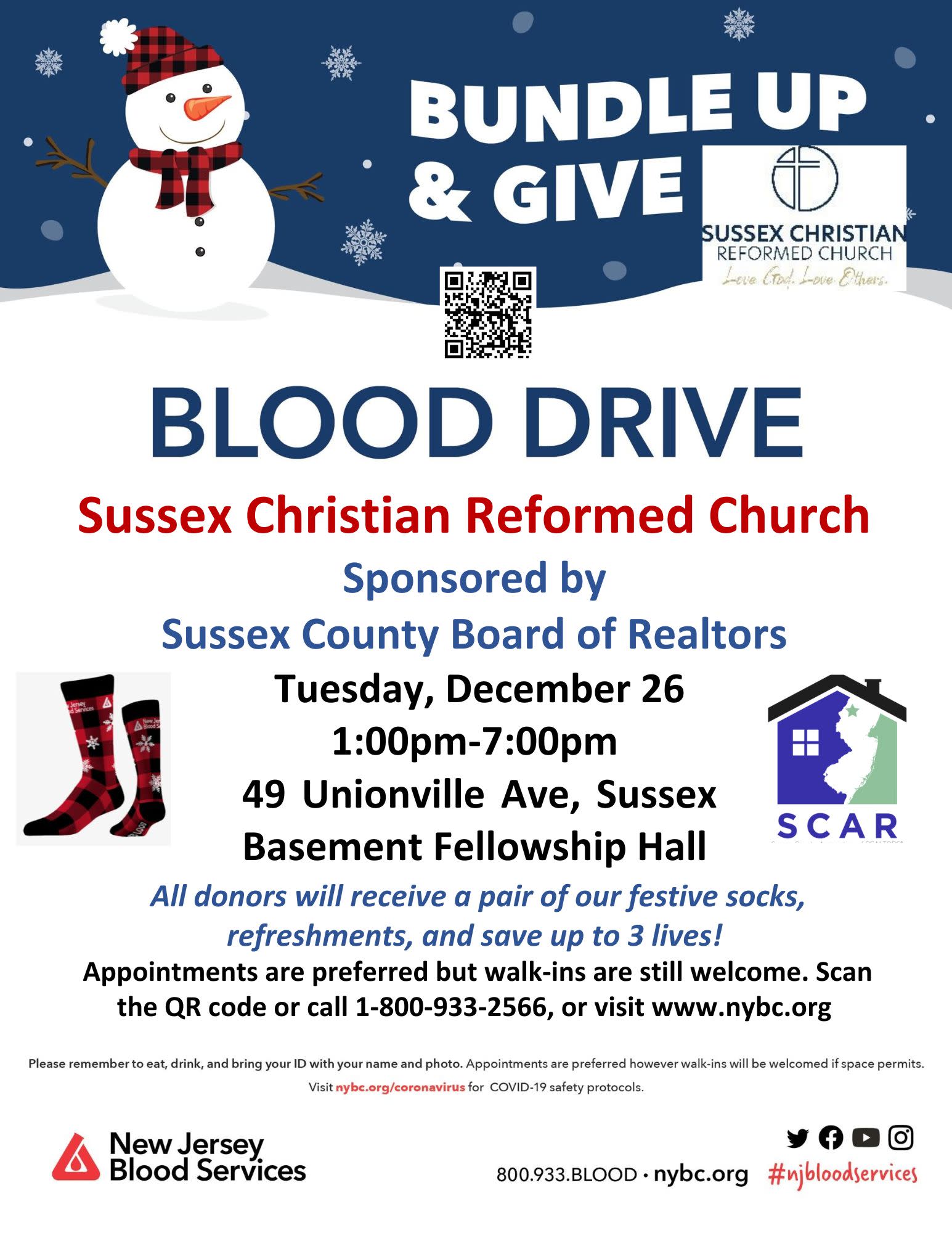 Donate Blood and receive a pair of festive socks as a thank you! Donors should eat a good meal and drink plenty of water Donors should bring a photo ID to the event Walk-ins can be taken, but making an appointment is preferred Whole blood donors can donate every 56 days/8 weeks Double Red Cell donors can donate every 112 days/16 weeksCommunity Blood Drive
